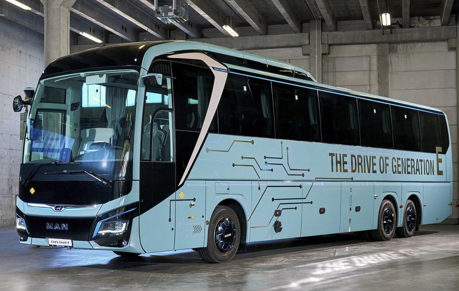 Компанія MAN Truck & Bus представила електричний міжміський лайнер MAN Lion’s Coach 14 E із запасом ходу до 650 км. Після успіху міських моделей Lion’s City E, випущених тиражем майже 3000 одиниць, німецький виробник зробив наступний крок у сфері електрифікації. Новий eCoach використовує перевірену технологію приводу від серійної вантажівки MAN eTruck і акумуляторні блоки NMC, що випускаються на заводі в Нюрнберзі. Ємність батарей становить від 320 до 480 кВт·год, що забезпечує запас ходу до 650 км – достатньо для більшості міжміських маршрутів без підзарядки. При цьому салон електробуса розрахований на комфортне перевезення 63 пасажирів. За місткістю багажного відділення «електрик» не поступається дизельному аналогу. Серійне виробництво Lion’s Coach E почнеться у 2026 році на заводі MAN в Анкарі.